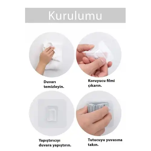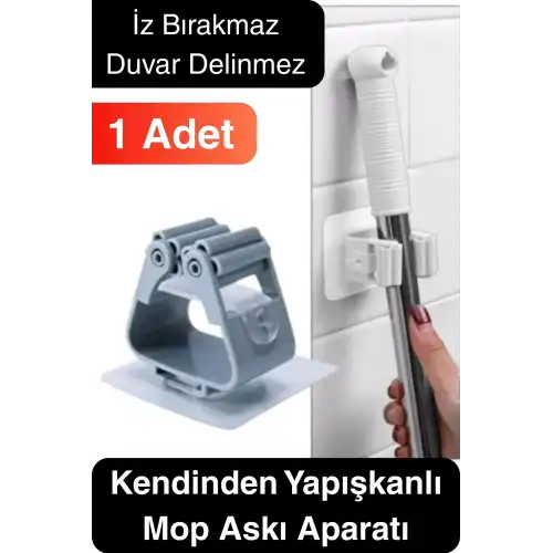 Güçlü yapışkan özelliği sayesinde mop ve paspaslarınızı duvara kolayca monte edebilirsiniz.; ; İz bırakmayan yapısı ile temiz bir görünüm sağlar ve duvarlarınıza zarar vermez.; ; Birçok mop veya paspasınız için idealdir.; ; Paket içeriği 1 adettir.; ; Kontrolleri yapıldıktan sonra özenle paketlenerek en hızlı şekilde gönderilmektedir.; ;