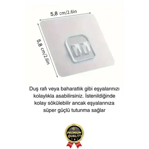 Tablo, ayna, havlu, mutfak gereçleri, raf ya da küçük eşyaları sabitlemek için idealdir. Şeffaf tasarımı dekorasyonunuzu bozmaz, sade bir görünüm sunar.