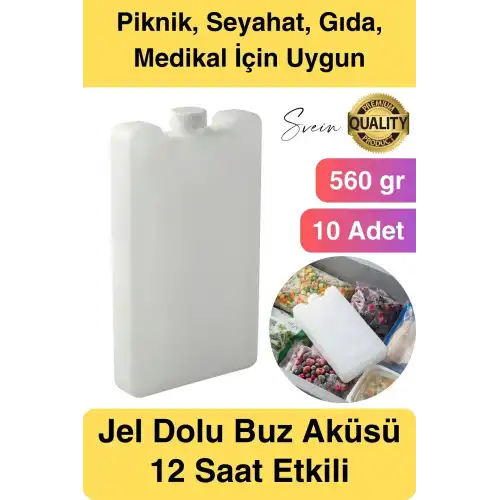 12 Saat Süreli 560 gr Jel Dolu Buz Aküsü Plastik Soğuk Zincir Gıda Yiyecek Uzun Süre Koruma 10 Adet