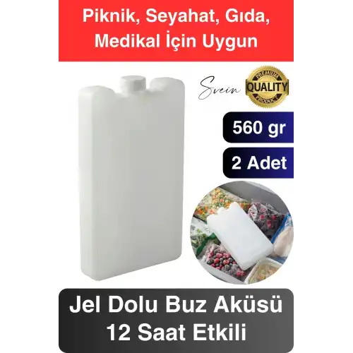 12 Saat Süreli 560 gr Jel Dolu Buz Aküsü Plastik Soğuk Zincir Gıda Yiyecek Uzun Süre Koruma 2 Adet