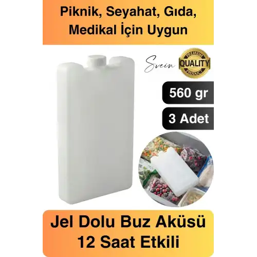 12 Saat Süreli 560 gr Jel Dolu Buz Aküsü Plastik Soğuk Zincir Gıda Yiyecek Uzun Süre Koruma 3 Adet