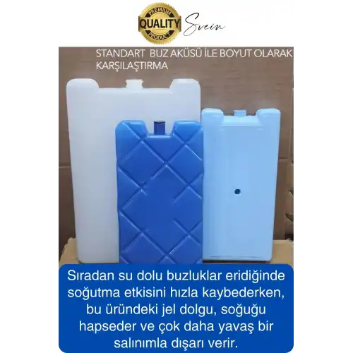 Bu buz aküsünü benzerlerinden ayıran en temel özellik, içerisindeki özel formüle edilmiş jel yapısıdır. Sıradan su dolu buzluklar eridiğinde soğutma etkisini hızla kaybederken, bu üründeki jel dolgu, soğuğu hapseder ve çok daha yavaş bir salınımla dışarı verir. Bu sayede termos çantalarınızın veya buzluklarınızın iç sıcaklığı uzun süre stabil kalır. Sert plastik dış gövdesi, darbelere ve düşmelere karşı ekstra dayanıklılık sunarken, sızdırma gibi riskleri tamamen ortadan kaldırır. Böylece çantalarınızda ıslanma veya dökülme sorunu yaşamadan güvenle kullanım sağlarsınız.