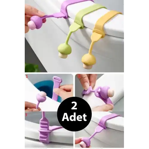 2 Adet Klozet Kapağı Kaldırma Hijyen Aparatı Tutucu Mantar Tasarım Silikon Esnek Pratik Banyo İçin