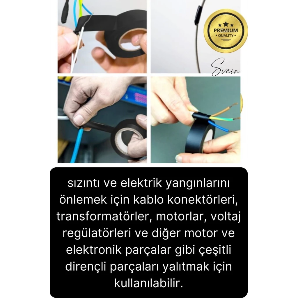 5 Ad. Premium Kalite 20 Mt Yalıtım İzole PVC Elektrik Bandı Su Geçirmez Sızdırmaz Koruma Bant Siyah