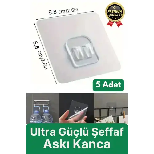 5 Adet Ultra Güçlü Suya Dayanıklı Şeffaf Askı Kanca, evinizin her köşesinde pratik kullanım ve güçlü tutuş sunar. Modern tasarımıyla estetik görünümü korurken, çivi veya matkap gerektirmeden kolayca monte edilir.