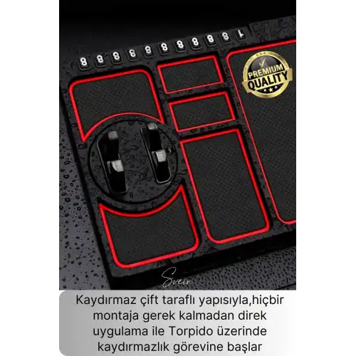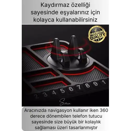 Araç İçi Torpido Kaydırmaz Telefon Tutucu Numaratör Organizer Ped 360 Derece Dönebilen Kaymaz