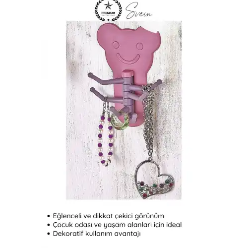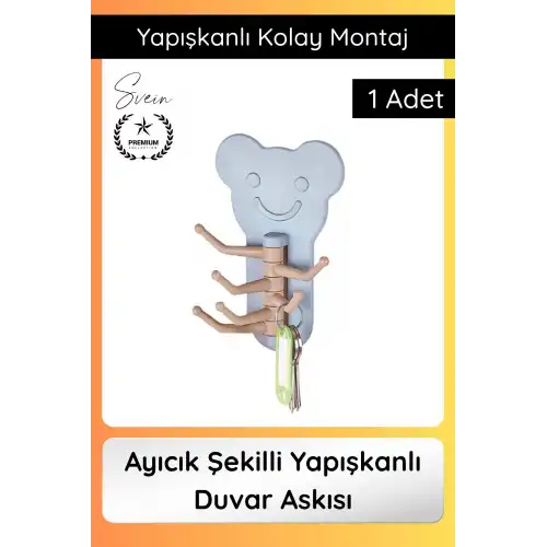 Ayıcık şekilli yapışkanlı duvar askısı ile eşyalarınızı düzenli tutarken yaşam alanlarınıza şık ve eğlenceli bir görünüm katabilirsiniz. Pratik ve dekoratif bir organizer çözümüdür.