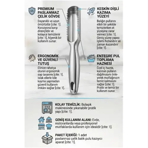 Farklı boyut ve türdeki balıklar için uygundur. Ev kullanıcıları ve profesyonel mutfaklar için ideal bir yardımcıdır.