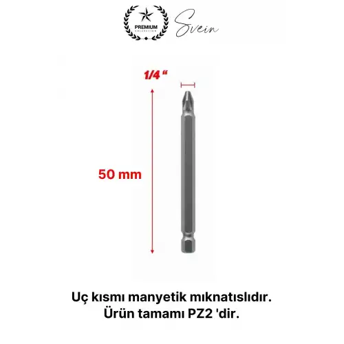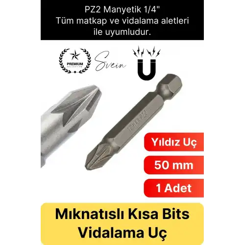 Şarjlı matkap ve vidalama makineleri için özel olarak tasarlanan 50 mm mıknatıslı PZ2 yıldız bits uç, güçlü manyetik yapısı ve kısa boy tasarımı sayesinde kontrollü, hızlı ve güvenli vidalama imkanı sunar. 1/4 inç hex giriş uyumluluğu ile geniş kullanım alanına sahiptir ve hem profesyonel hem bireysel kullanım için idealdir.