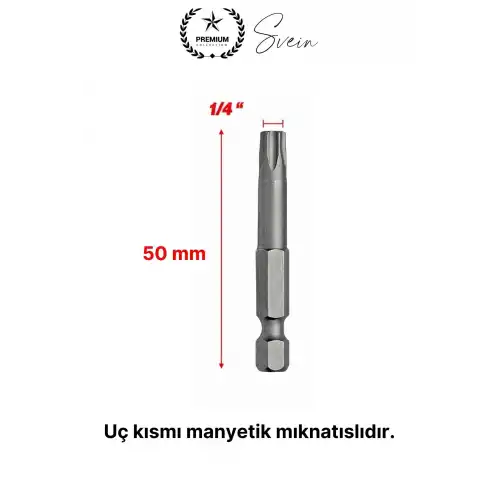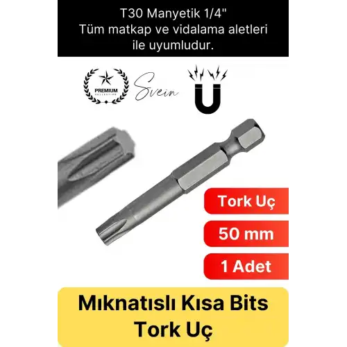 Mobilya montajı, teknik bakım, otomotiv ve endüstriyel uygulamalarda güvenle kullanabileceğiniz 50 mm mıknatıslı T30 Torx bits uç ile işlerinizi daha hızlı ve kontrollü tamamlayın.