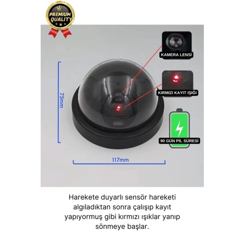 Deluxe 5 Metre Harekete Duyarlı Pilli Yanıp Sönen Kırmızı Işıklı Caydırıcı Dome Güvenlik Kamerası