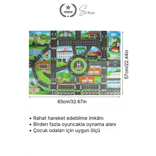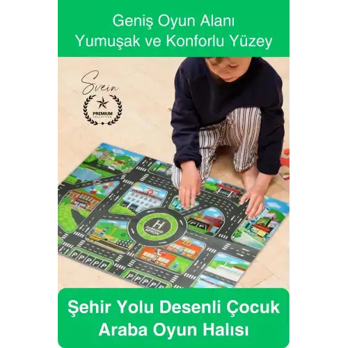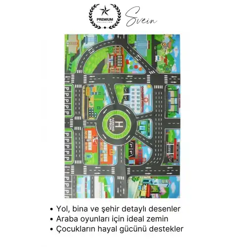 Şehir yolu desenli çocuk araba oyun halısı ile çocuklar için hem eğlenceli hem öğretici bir oyun alanı oluşturabilirsiniz. Geniş yüzeyi ve konforlu yapısı ile günlük oyun saatlerini daha keyifli hale getirir.