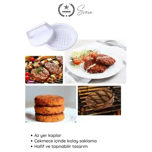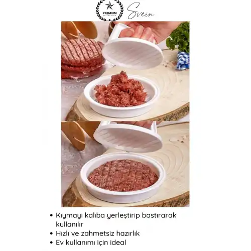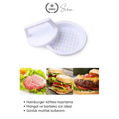 Evde kolay ve hızlı şekilde hamburger köftesi hazırlamak için tasarlanan hamburger köfte presi; kıymayı eşit ve düzgün formda şekillendirerek profesyonel görünümlü burgerler elde etmenizi sağlar. Pratik kullanımı sayesinde mutfakta zaman kazandırır.