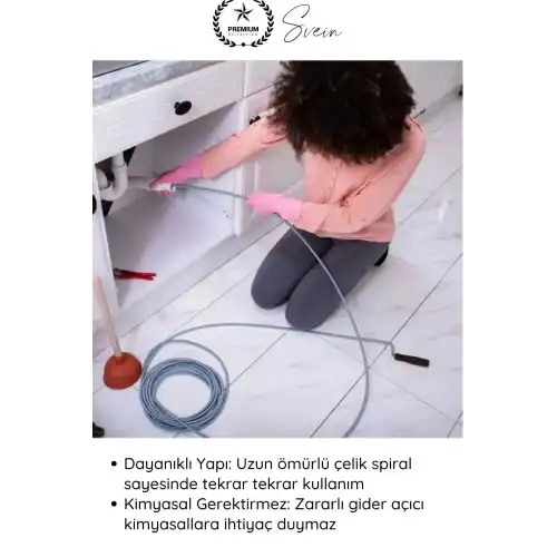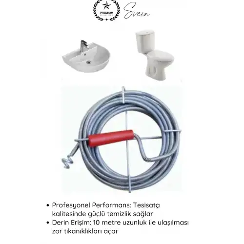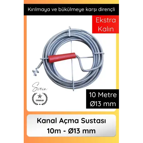 Ev, iş yeri veya profesyonel kullanım için tasarlanan kanal açma sustası, lavabo, tuvalet ve gider borularında oluşan tıkanıklıkları hızlı ve etkili şekilde açmak için geliştirilmiştir. 10 metre uzunluğu sayesinde derin boru hatlarına ulaşarak sorunu kökten çözer.