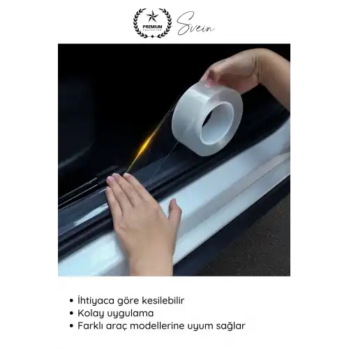 Araç kapılarında oluşabilecek çizik, darbe ve sürtmelere karşı koruma sağlamak için tasarlanan oto kapı koruma bandı; şeffaf yapısı sayesinde araç görünümünü bozmadan etkili koruma sunar. Dayanıklı malzemesi ve pratik uygulanabilir yapısı ile araç bakımında önemli bir yardımcıdır.