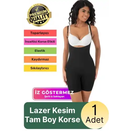 Günlük kullanımda veya özel günlerde daha fit ve toparlanmış bir siluet elde etmek isteyenler için tasarlanan askılı tam boy korse, vücudu sararak anında daha sıkı bir görünüm sunar. Lazer kesim teknolojisi sayesinde iz yapmadan kıyafetlerin altında pürüzsüz bir duruş sağlar. Kaymaz yapısı ve esnek dokusuyla gün boyu konforlu kullanım sunarken, vücut hatlarını daha dengeli ve estetik bir şekilde şekillendirir.