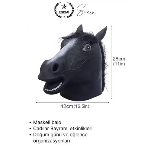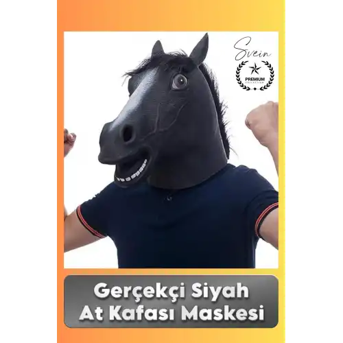 Gerçekçi siyah at kafası maskesi ile partilerde ve eğlence etkinliklerinde dikkat çekici ve komik bir görünüm elde edebilirsiniz. Eğlenceyi artıran farklı ve yaratıcı bir kostüm seçeneğidir.