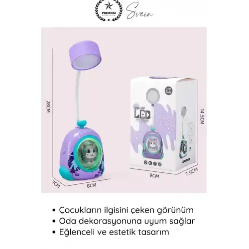 Çocuklar için özel olarak tasarlanan USB şarjlı LED mini masa lambası; sevimli hayvan figürü ile hem aydınlatma hem de dekoratif bir aksesuar olarak kullanılabilir. Okuma, ders çalışma ve gece ışığı olarak ideal olan bu lamba, yumuşak ışığı sayesinde göz yormadan konforlu kullanım sunar.