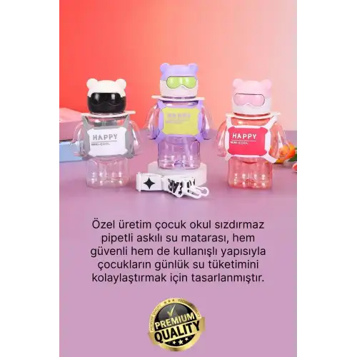 Sağlıklı malzemesi, kullanışlı tasarımı ve sevimli görünümü ile çocukların günlük hayatını kolaylaştıran bu pipetli su matarası, ebeveynlerin güvenle tercih edebileceği pratik bir çözümdür. Siz de çocuğunuzun su içme alışkanlığını destekleyen güvenli ve eğlenceli bir matara arıyorsanız bu ürünü tercih edebilirsiniz.