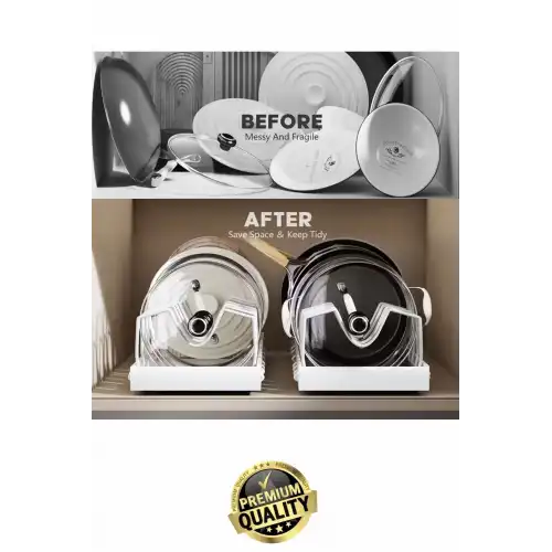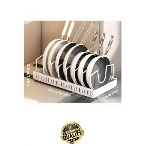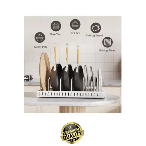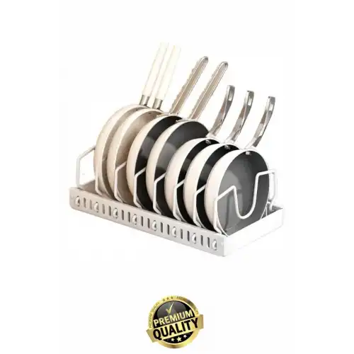 Bu organizer sadece tava ve tencereler için değil, aynı zamanda kapaklar, servis tabakları, fırın tepsileri ve diğer mutfak ekipmanları için de kullanılabilir. Çok amaçlı kullanım özelliği sayesinde mutfak dolaplarınızda fonksiyonel bir depolama alanı oluşturur.