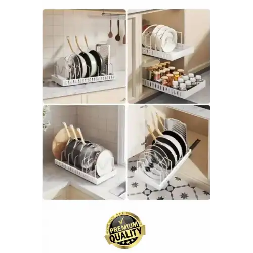 Ayarlanabilir yapısı sayesinde farklı dolap ölçülerine kolayca uyum sağlayan bu organizer, mutfak dolaplarındaki boş alanı en verimli şekilde kullanmanıza yardımcı olur. Tencere, tava, kapak ve mutfak ekipmanlarınızı düzenli şekilde yerleştirmenizi sağlar. Böylece dolap içinde oluşan karışıklık ortadan kalkar ve ihtiyacınız olan mutfak gerecini saniyeler içinde bulabilirsiniz.