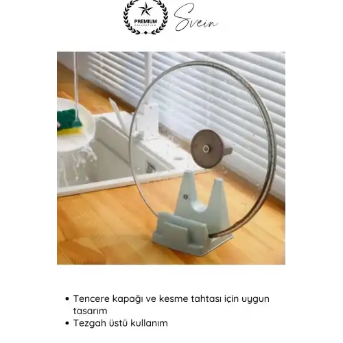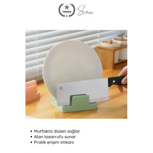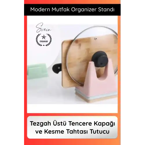 Tezgah üstü mutfak organizer standı, tencere kapakları ve kesme tahtalarını düzenli şekilde saklamanızı sağlar. Kompakt tasarımı sayesinde mutfak tezgahında yer tasarrufu sunarken kullanım kolaylığı sağlar.