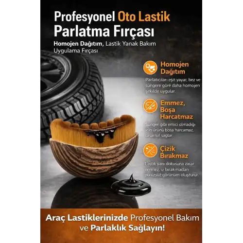 Lastik parlatıcı sprey veya jel ürünler doğrudan sıkıldığında yüzeyde lekelenme, akma ve dengesiz parlaklık oluşturabilir. Bez ya da sünger kullanımı ise fazla ürün tüketimine ve düzensiz yayılmaya neden olur. Bu özel tasarımlı uygulama fırçası, bakım ürününü kontrollü şekilde dağıtarak hem ekonomik hem de estetik bir sonuç sunar.