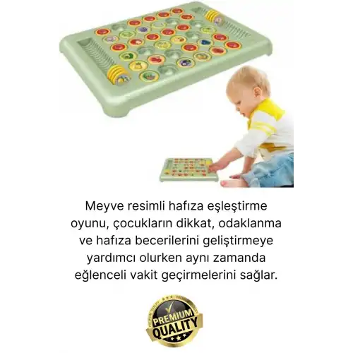 Çocukların zihinsel gelişimini destekleyen oyunlar, öğrenme sürecini daha keyifli ve kalıcı hale getirir. Meyve resimli hafıza eşleştirme oyunu, çocukların dikkat, odaklanma ve hafıza becerilerini geliştirmeye yardımcı olurken aynı zamanda eğlenceli vakit geçirmelerini sağlar. Renkli ve dikkat çekici tasarımı sayesinde çocukların ilgisini çeker ve oyun süresini daha verimli hale getirir.