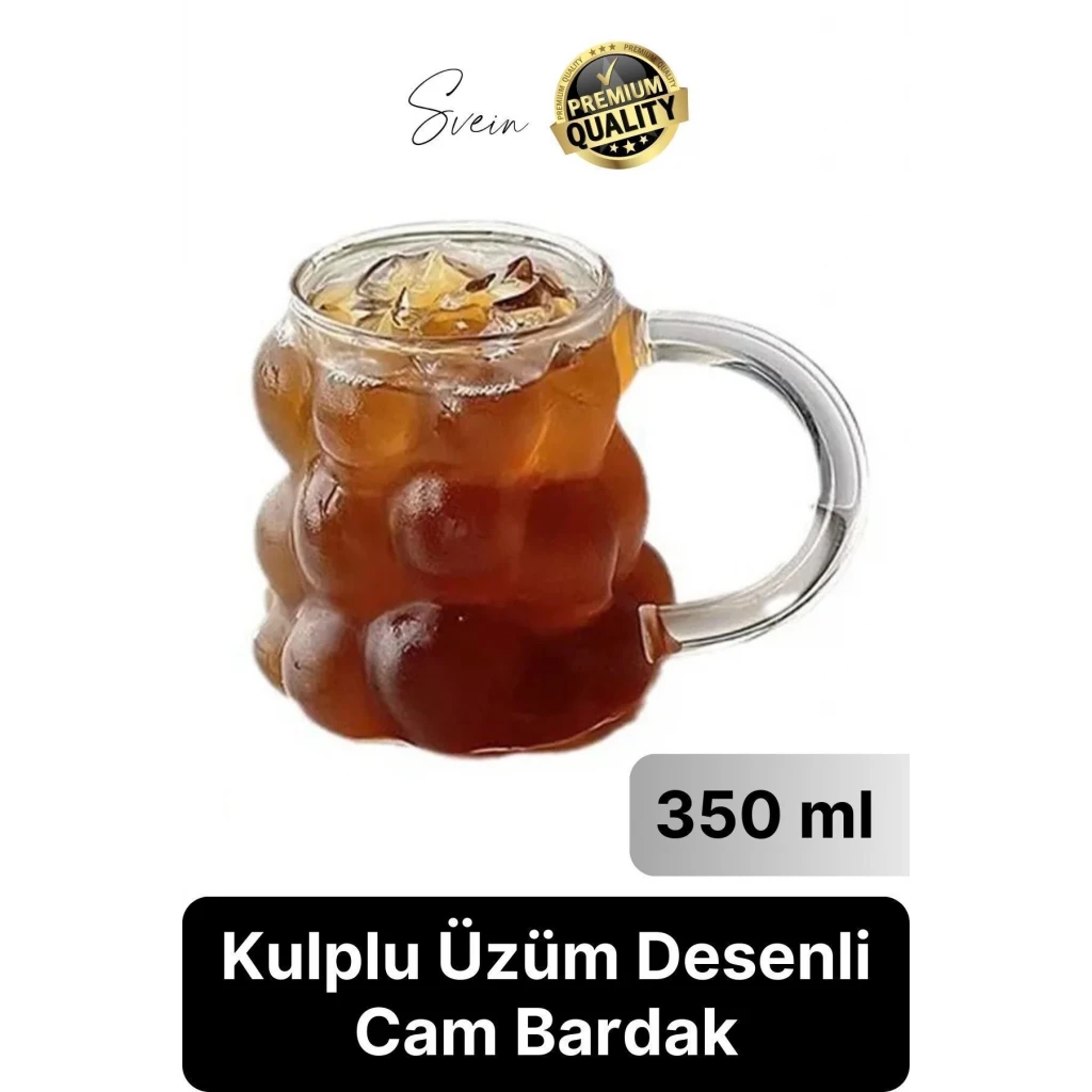 Özel Tasarım Borosilikat Cam Kulplu Üzüm Bardak Boncuk Şekilli Kahve Sunum Kupası Isıya Dayanıklı