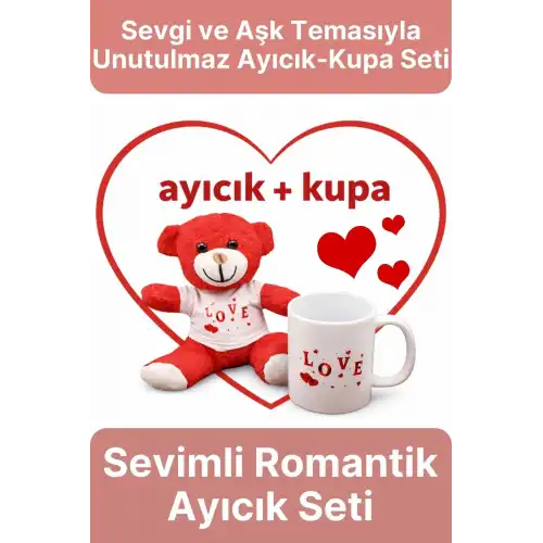 Ayıcık ve kupa uyumlu bir bütün oluşturacak şekilde tasarlanmıştır. Renk uyumu ve love konsepti, ürünü hem görsel olarak etkileyici hem de hediye vermeye hazır bir set haline getirir. Online alışverişte öne çıkan, estetik açıdan güçlü bir tercihtir.
