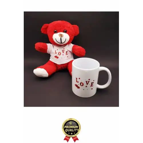 Set içerisinde yer alan kırmızı peluş ayıcık, sevgi ve aşk temasını güçlü bir şekilde yansıtır. Yumuşak dokusu ve sevimli görünümüyle ilk bakışta duygusal bir bağ kurar. Üzerindeki love temalı tasarım, hediyenin anlamını daha da derinleştirir. Sevgiliye, arkadaşa veya özel hissettirmek istediğiniz herkese hitap eder.