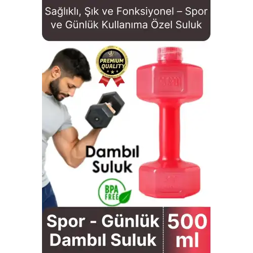 Spor yaparken veya günlük kullanımda yanınızdan ayırmak istemeyeceğiniz özel tasarım pembe dambıl suluk, şık rengi ve fonksiyonel yapısıyla dikkat çekiyor. 500 ml kapasitesi sayesinde gün boyu ihtiyacınız olan suyu yanınızda taşımanıza olanak tanır.