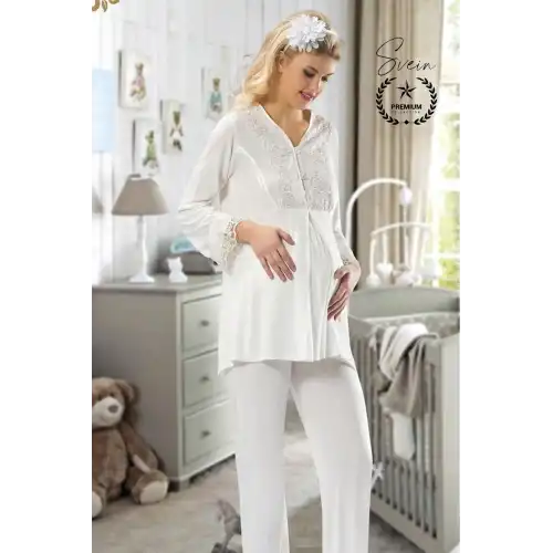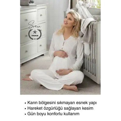 Ekru lohusa pijama takımı ile hamilelik ve doğum sonrası süreci konforlu, şık ve huzurlu şekilde geçirebilirsiniz. Anne adayları için özel olarak tasarlanmış bu rahat pijama takımı, hem kendiniz hem sevdikleriniz için anlamlı bir tercih olacaktır.