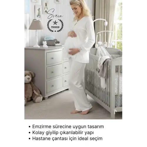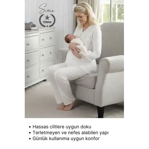 Hamilelik ve doğum sonrası dönemde maksimum konfor sunan ekru lohusa pijama takımı; yumuşak dokusu, sade ve zarif tasarımı ile anne adaylarının ihtiyaçlarına özel olarak tasarlanmıştır. Hastane çıkışı ve ev kullanımı için ideal olan bu takım, hem rahatlık hem şıklık arayanlar için mükemmel bir tercihtir.