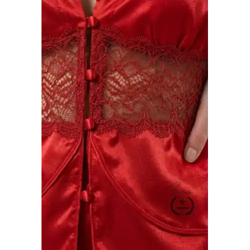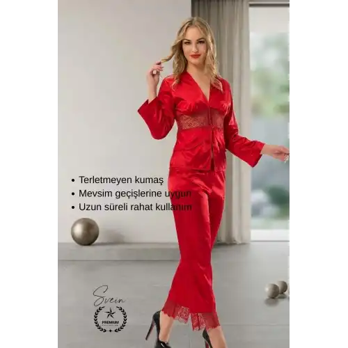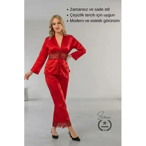 Konfor ve şıklığı bir arada sunan Kırmızı Saten kadın pijama takımı ile ev giyiminizde rahatlığı ön plana çıkarabilirsiniz. Günlük kullanım ve özel çeyizlik tercihler için ideal bir seçenektir.