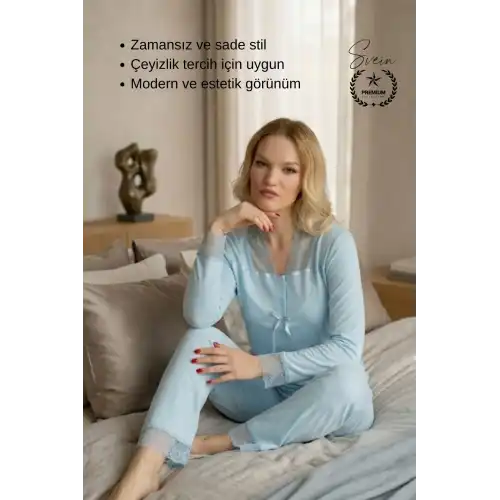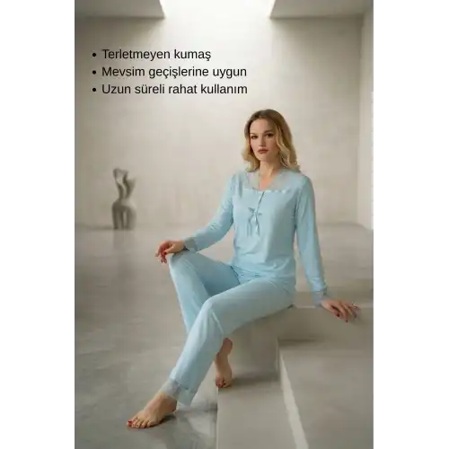 Konfor ve şıklığı bir arada sunan Turkuaz Saten kadın pijama takımı ile ev giyiminizde rahatlığı ön plana çıkarabilirsiniz. Günlük kullanım ve özel çeyizlik tercihler için ideal bir seçenektir.