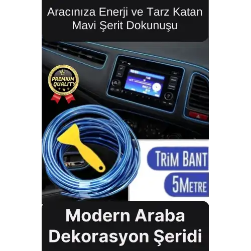 Mavi Araba Dekorasyon Şeridi 5 Metre Trim Şeridi, aracınıza şıklık, enerji ve özgün bir görünüm kazandırır. Hem pratik kullanımı hem de göz alıcı tasarımıyla aracınıza kişisel bir dokunuş katmanın en kolay yoludur.