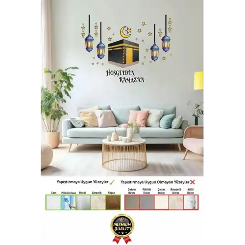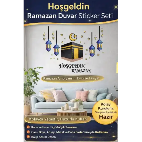 Ramazan boyunca kullanıp bayram sonrası kolayca çıkarabilir, seneye tekrar uygulayabilirsiniz. Bu sayede kalıcı boya veya duvar kaplama gerektirmez.