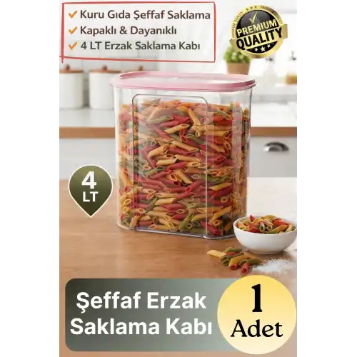 4 litre hacme sahip bu saklama kabı, birçok farklı kuru gıdayı rahatlıkla depolayabileceğiniz geniş bir iç alan sunar. Özellikle makarna, bakliyat ve tahıl ürünlerini tek bir kap içerisinde düzenli şekilde saklamanızı sağlar. Bu sayede mutfak dolaplarında karmaşa oluşmasını önler ve depolama alanınızı daha verimli kullanmanıza yardımcı olur.