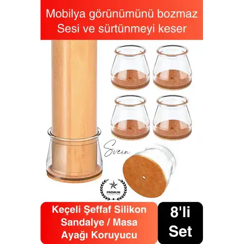 Zeminlerinizi çiziklerden korumak ve mobilya hareketlerinde sessiz kullanım sağlamak için keçeli şeffaf silikon sandalye masa ayağı koruyucu 4’lü seti şimdi tercih edin.