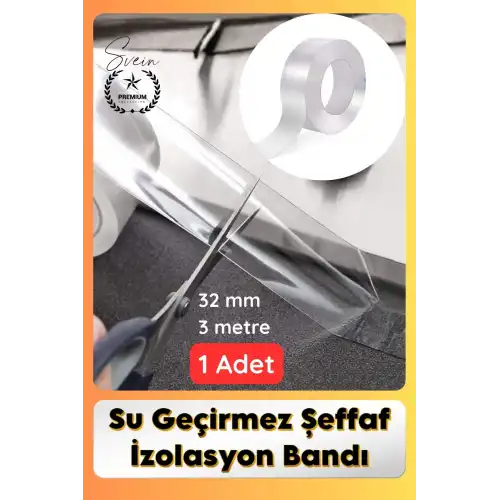 Tezgâh, lavabo ve ocak kenarlarında oluşabilecek su sızıntılarını önlemek için tasarlanan şeffaf izolasyon bandı; güçlü yapışkan yüzeyi sayesinde uzun süreli sızdırmazlık sağlar. Pratik uygulaması ve çok amaçlı kullanım alanı ile mutfak ve banyo için ideal bir tamir ve koruma çözümüdür.