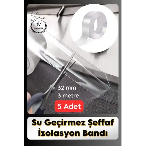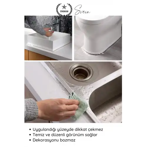 Tezgâh, lavabo ve ocak kenarlarında oluşabilecek su sızıntılarını önlemek için tasarlanan şeffaf izolasyon bandı; güçlü yapışkan yüzeyi sayesinde uzun süreli sızdırmazlık sağlar. Pratik uygulaması ve çok amaçlı kullanım alanı ile mutfak ve banyo için ideal bir tamir ve koruma çözümüdür.