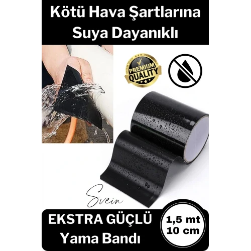 Suya Dayanıklı Bant Flex Tape, hemen hemen her şeyi, yama, bağlama, mühürleme ve tamir yapabilen süper güçlü, kauçuklaştırılmış, su geçirmez, yeni teknolojiyle üretilmiş sıradan bantların dışında bir banttır. ; Suya Dayanıklı Bant Flex Tape, yapısı sebebiyle, yapışacağı her noktaya uyumluluk ve mukavemet sağlayan, kalın, esnek, kauçuk astarlı olarak formülize edilmiştir. ; Suya Dayanıklı Bant, geniş çatlakları, boşlukları ve delikleri hızlı bir şekilde örtmek için, normal bantlara göre ekstra genişliktedir. ; Su, hava ve nemi dışarı atın, hemen hemen her şey onarın! ; Su altında kaplama yapılabilir. ; Kesilip parçalar halinde kullanılabilir. ; Çok güçlüdür. ; Tek kullanımlıktır, kaplanan yüzeyden çıkarıldığında tekrar uygulanamaz. ; Uzunluk: 150 cm, Genişlik: 10 cm. ; Paket İçeriği: 1 adet Flex Tape Dayanıklı Bant ;