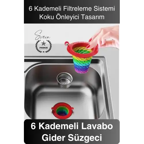 Mutfak ve banyo lavabolarında oluşabilecek tıkanıklıkları önlemek için tasarlanan 6 kademeli lavabo gider süzgeci; güçlü filtreleme yapısı sayesinde saç, yemek artıkları ve yabancı maddelerin gider borusuna gitmesini engeller. Hijyenik ve pratik tasarımı ile günlük kullanımda büyük kolaylık sağlar.