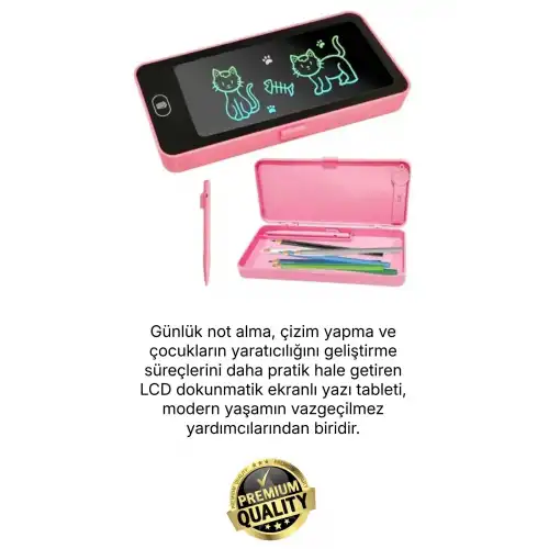 Günlük not alma, çizim yapma ve çocukların yaratıcılığını geliştirme süreçlerini daha pratik hale getiren LCD dokunmatik ekranlı yazı tableti, modern yaşamın vazgeçilmez yardımcılarından biridir. Özel kalemi ve tek tuşla silme özelliği sayesinde hem zamandan tasarruf sağlar hem de kağıt kullanımını azaltarak çevre dostu bir alternatif sunar. Hafif ve taşınabilir yapısıyla her an her yerde kullanım imkânı sunar.