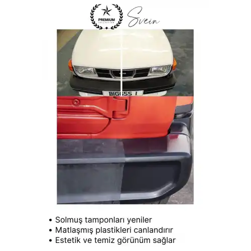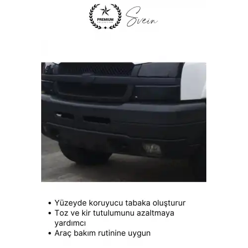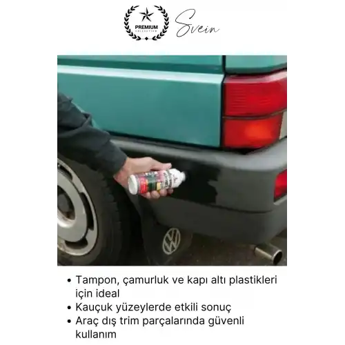 Araç tamponu, çamurluk ve plastik aksamlar için özel geliştirilen siyah tampon boyası; solmuş, matlaşmış ve yıpranmış yüzeyleri yenileyerek ilk günkü görünümüne kavuşturur. Suya dayanıklı formülü sayesinde uzun süreli koruma ve kalıcı siyah parlaklık sağlar.