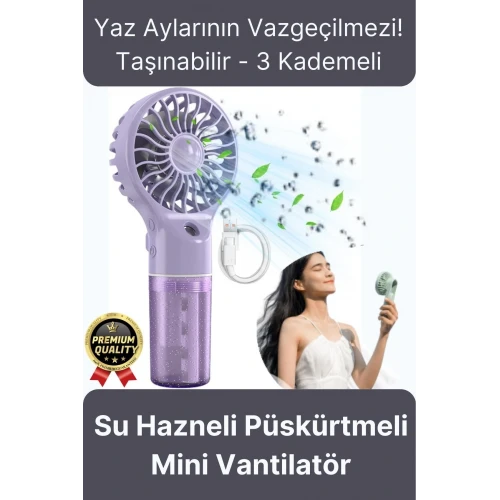 • Özel Üretim Taşınabilir 3 Kademeli 1200 mAh Usb Şarjlı Su Hazneli Püskürtmeli Mini Klima Vantilatör