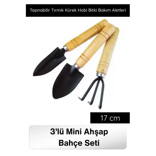 3’lü mini ahşap bahçe seti ile bitkilerinizin bakımını daha kolay ve keyifli hale getirebilirsiniz. Pratik, hafif ve kullanışlı yapısı ile hobi bahçeciliğinde ideal bir yardımcıdır.