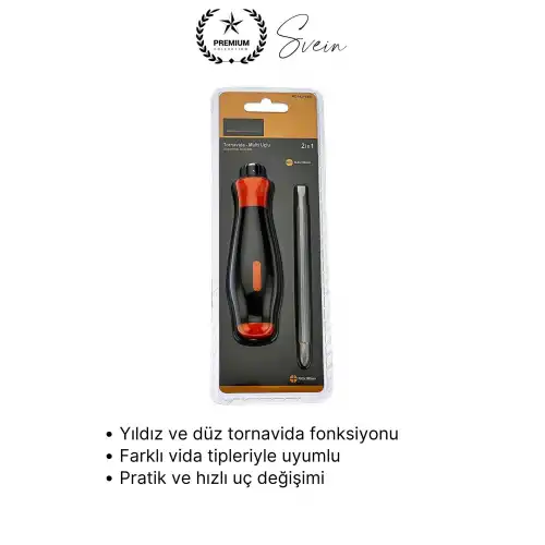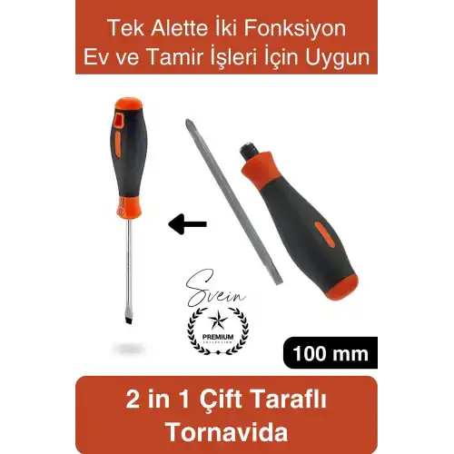 2 in 1 çift taraflı tornavida ile hem yıldız hem düz vida işlemlerini tek aletle kolayca gerçekleştirebilirsiniz. Pratik, ergonomik ve çok amaçlı bir el aleti arayanlar için ideal bir çözümdür.