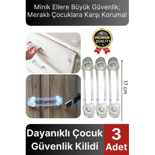 Paket içeriğindeki 3 adet güvenlik kilidi, en çok kullanılan ve risk taşıyan bölgelerde güvenliği artırmak için idealdir. Mutfak, banyo veya çocuk odalarında etkili şekilde kullanılabilir.